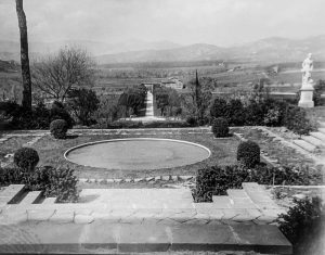 Tra le testimonianze più preziose del passato di Villa Fassia troviamo una serie di foto storiche risalenti agli anni '30. Queste immagini raccontano l'eleganza originaria del parco: i viali alberati, le aiuole geometriche e le prospettive attentamente studiate da Porcinai per integrare il giardino con il panorama umbro. Ogni scatto ci restituisce un frammento del gusto estetico dell'epoca e della maestria con cui il paesaggista ha trasformato Villa Fassia in un luogo di rara bellezza.
