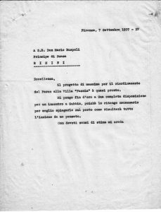 Un altro straordinario tassello della storia del parco è rappresentato dalle lettere scambiate tra Pietro Porcinai e la famiglia Ruspoli, nella persona di Don Mario Ruspoli . Questa corrispondenza, conservata e recentemente digitalizzata, svela dettagli inediti sulla progettazione del giardino. Le lettere mostrano un dialogo intenso e profondo, con Porcinai che propone idee innovative e i Ruspoli che condividono il desiderio di creare un parco unico, in grado di riflettere il prestigio della famiglia e l'armonia del paesaggio circostante.